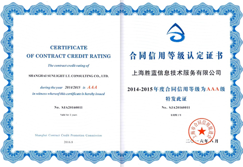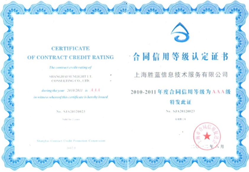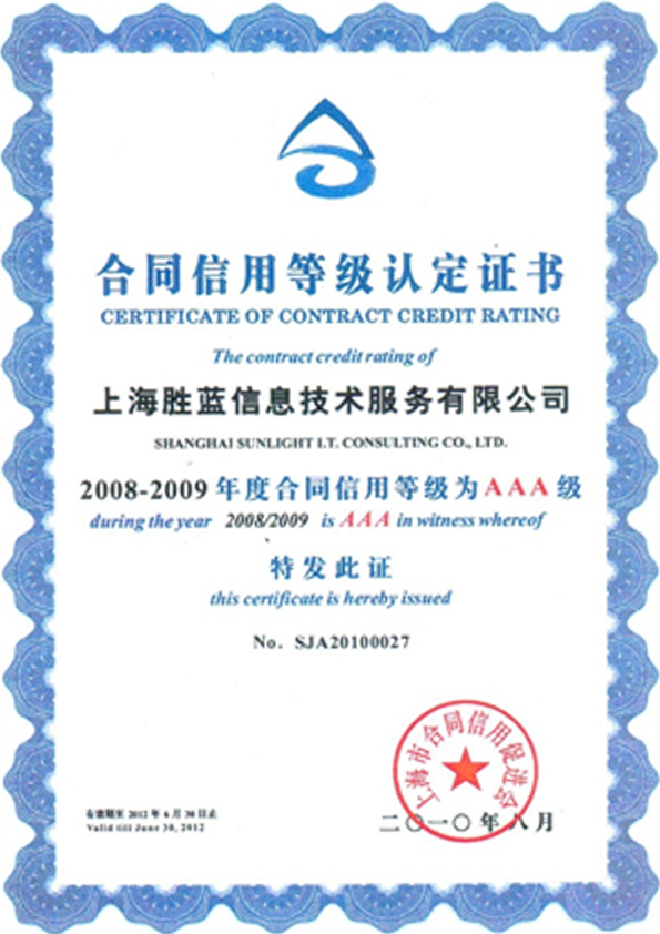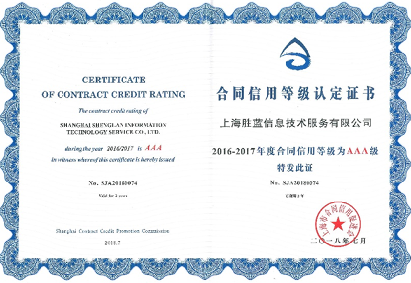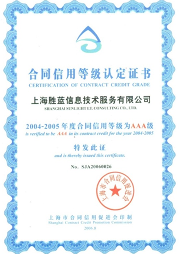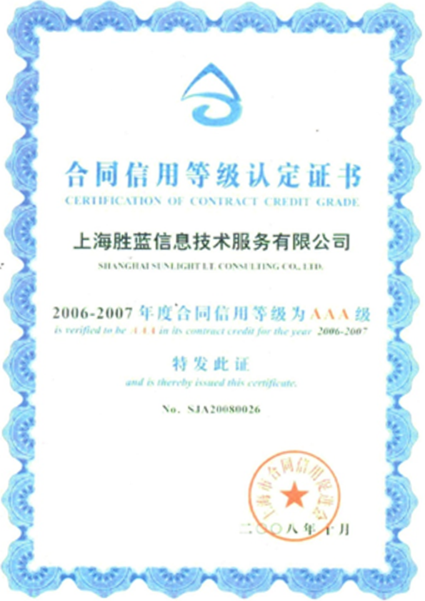 AAA级“上海市守合同重信用企业”证书