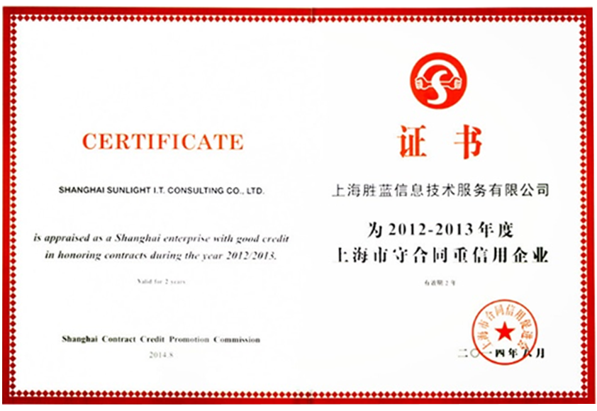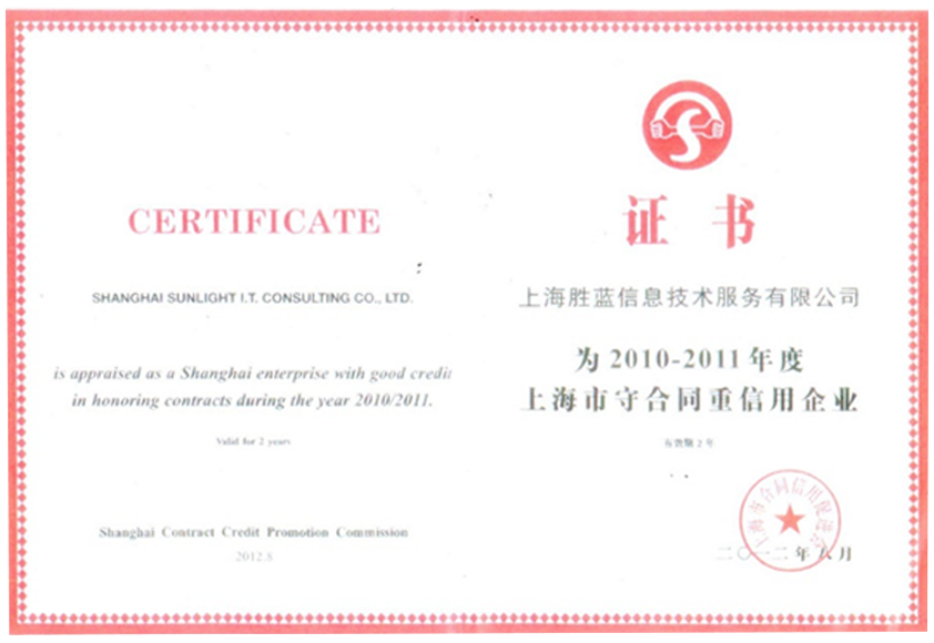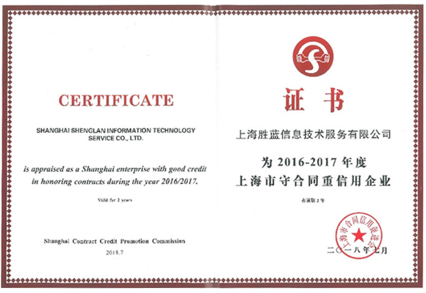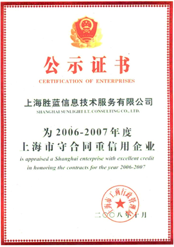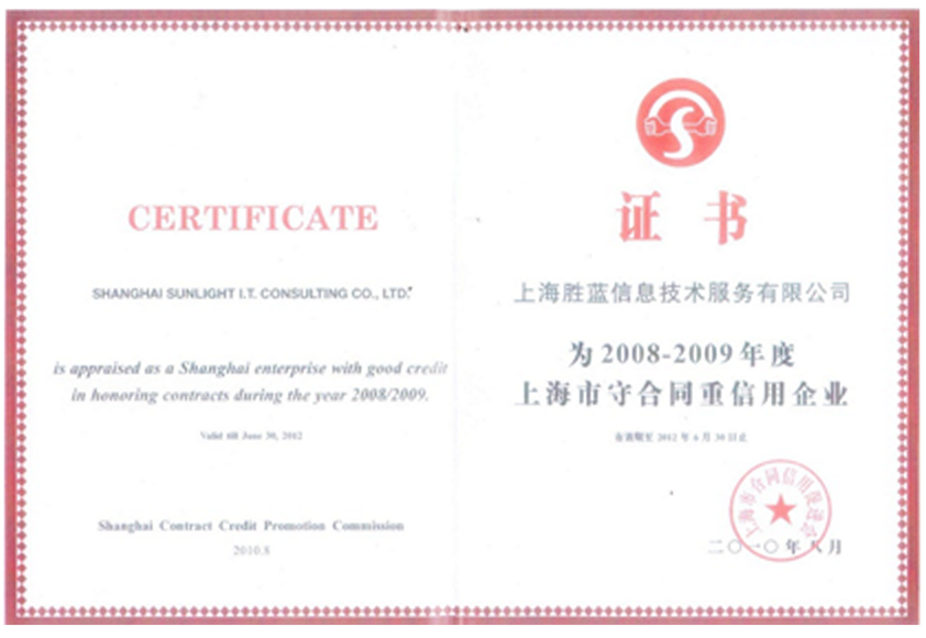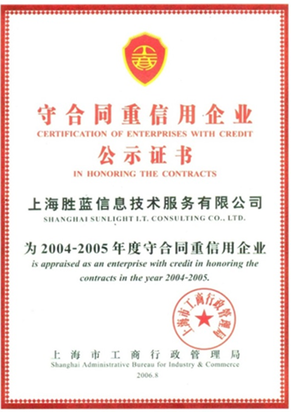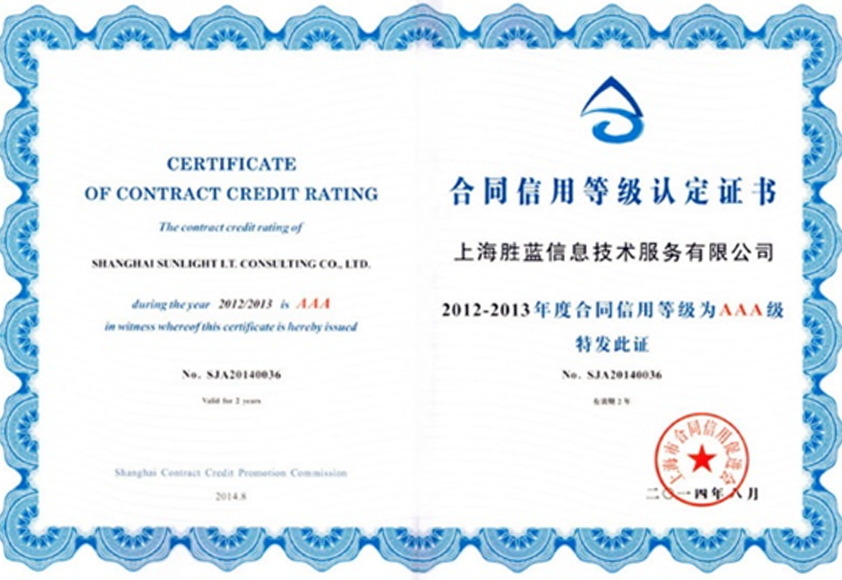 AAA级“上海市守合同重信用企业”证书